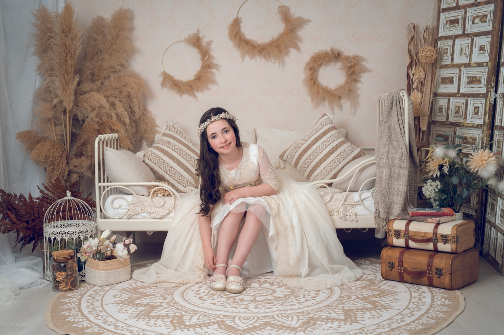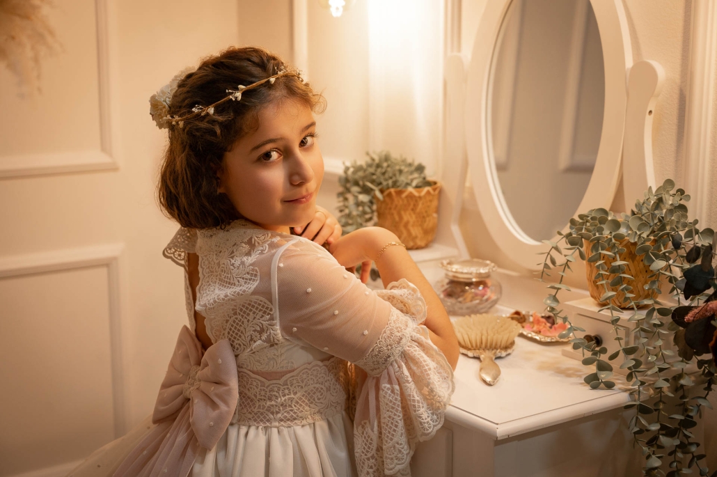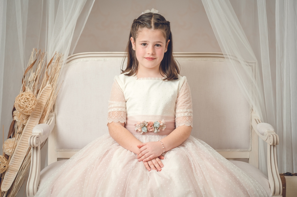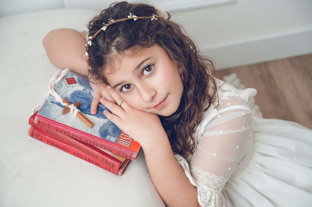 Las sesiones de comunión en estudio dan como resultado una fotografía cuidada, artística y elegante… pero también natural y divertida, porque lo más importante es que los niños se sientan ellos mismos.