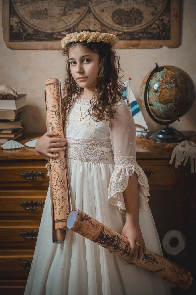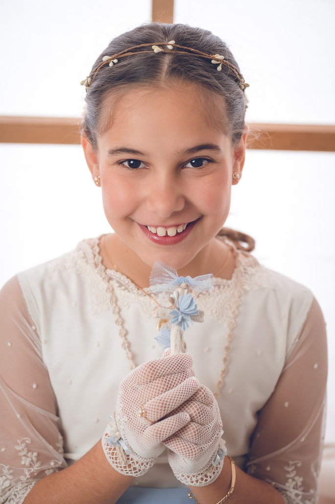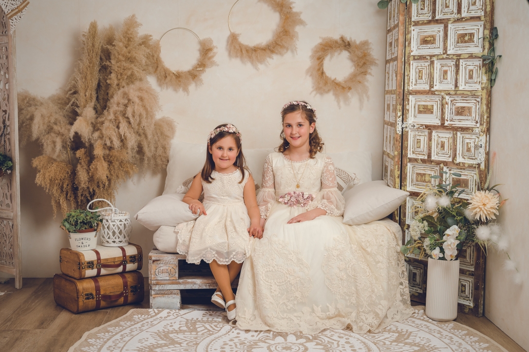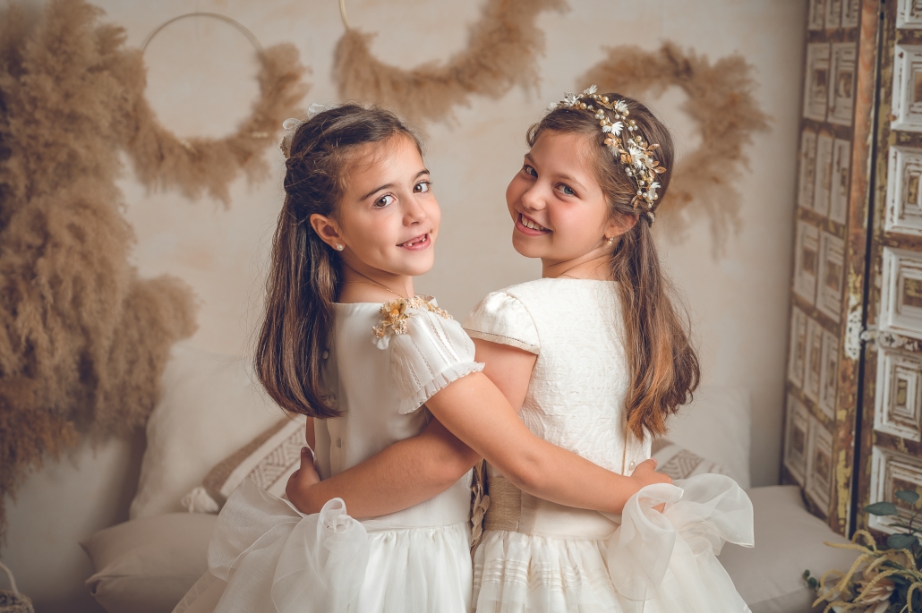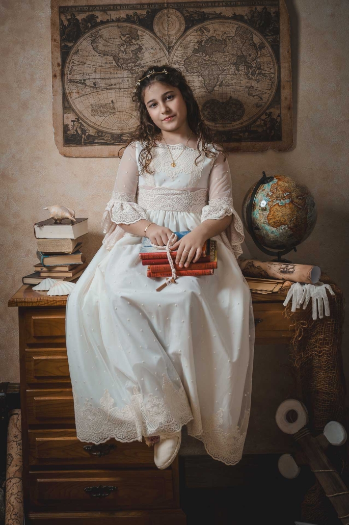 Las sesiones de comunión en estudio dan como resultado una fotografía cuidada, artística y elegante… pero también natural y divertida, porque lo más importante es que los niños se sientan ellos mismos.